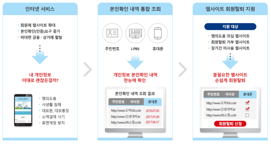 이 서비스는 우리가 회원가입시 개인인증을 한 기록을 확인하여 어떠한 사이트에 가입을 했는지 보여주는 사이트입니다.
