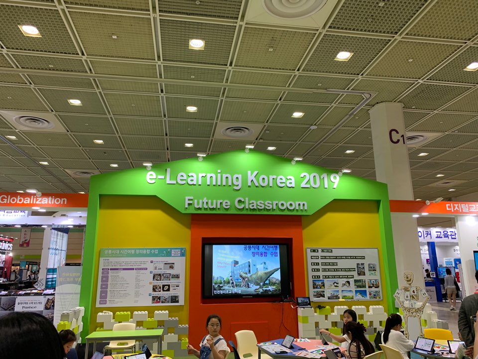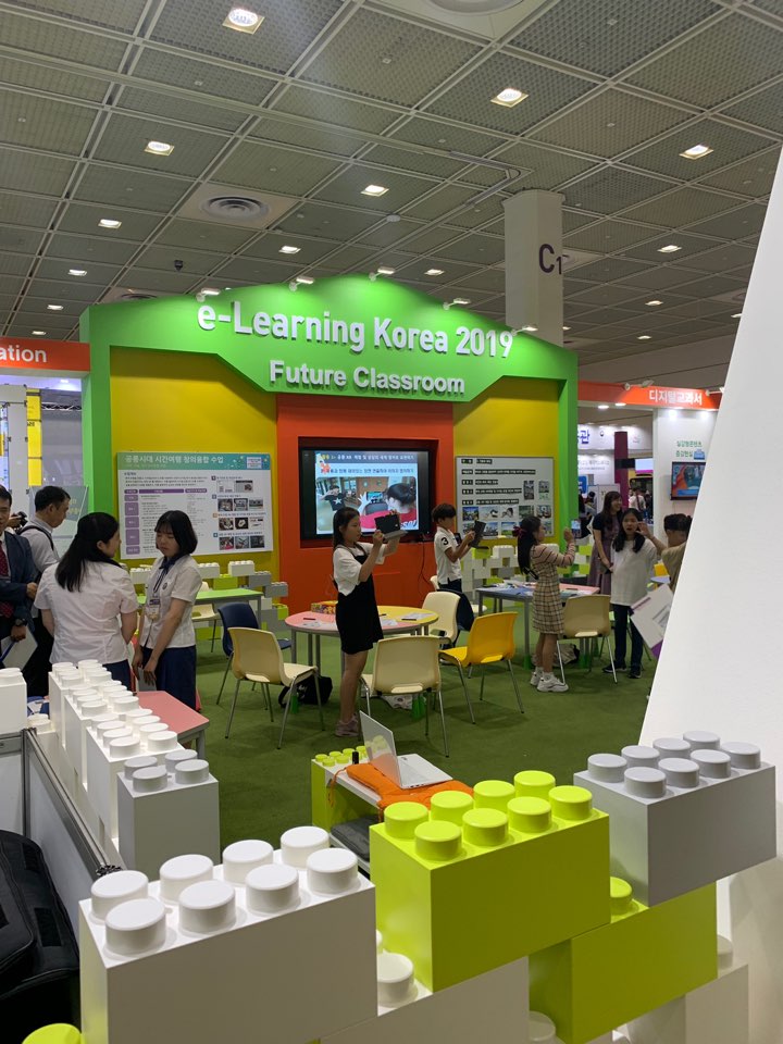 들아가자 마자 보이는 곳은 e-learning korea 2019 미래의 교실이라는 부스.. 마치 미래의 학교는 어떤식으로 교육을 할지 꾸며놓은 곳 같았다. 주변에 학교 선생님인 지인들이 많아서 관심이 많이 갔다.