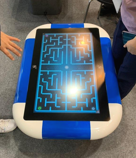 아 저 파란색 테이블은 (주)엠에스코리아의 제품이다. 유아용 터치테이블이다. 유아들을 위해서 제공되는 테이블이고 여러명이서 같이 사용할 수 있다. 터치감은 그닥 좋지 않았지만, 그래도 앞으로는 유치원에서 아이들이 저런것을 가지고 놀지 않을 까 싶은 생각이 들었다.