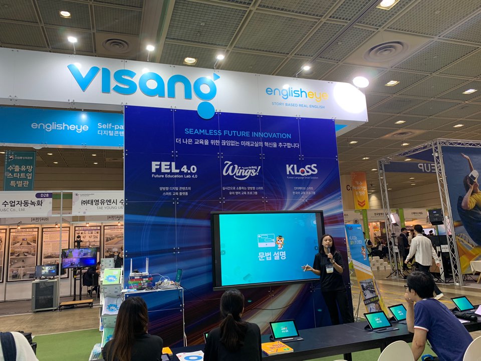 비상이라는 업체에서는 강연형식으로 홍보를 하고 있었고, 꽤 큰 부스를 자리잡고 있었다. 보이는 칠판같은 화면과 학생자리의 각 태블릿이 연동되어 교육을 진행하는 형식이다. 이는 이 곳에 있는 모든 교육 프로그램들의 공통점이기도 했다. 단지 동기식인가 비동기식인가의 차이일 뿐 딱히 놀라울만한 기능들은 아닌듯했다.