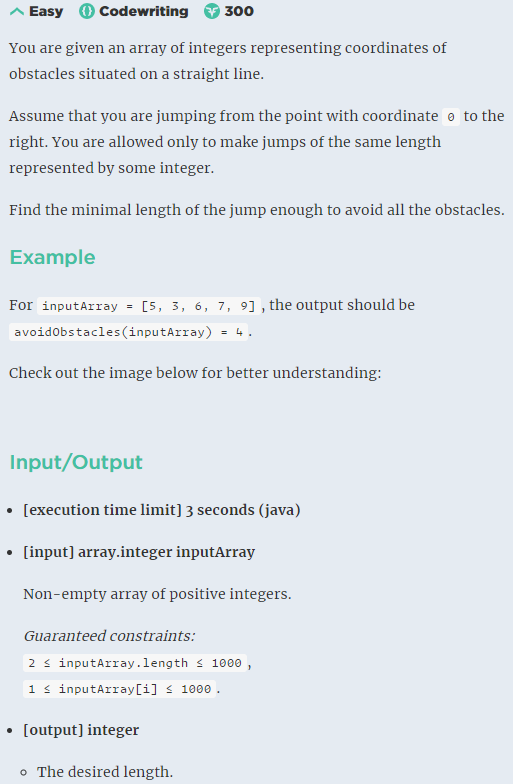 int avoidObstacles(int[] inputArray) {