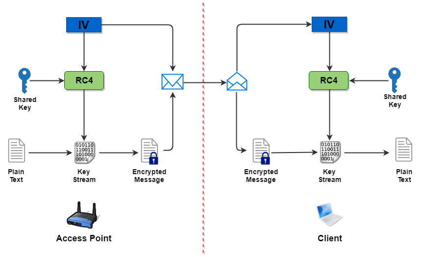 요약! 암호화되지 않은 IV가 암호화된 와이파이 패킷과 함계 전송되기 떄문에 수시니자는 암호해독을 동기화 할 수 있었습니다. 그리고 비번이 필요했고, 그 정보들은 무선으로 사방 팔방 뿌려진다는 것.