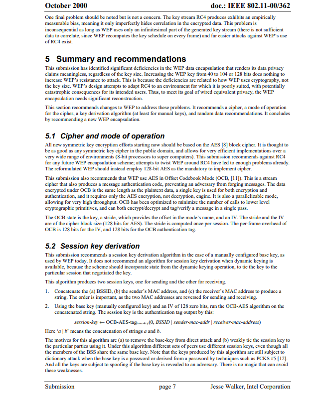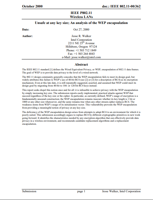2000년 10월 제시워커는 WEP에 대한 문제 제기를 최초로 하였다고 합니다.