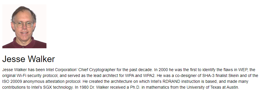 그는 WEP는 태생적인 결함이 있으며, 알고리즘에 취약점에 대해 비평을 하였습니다.