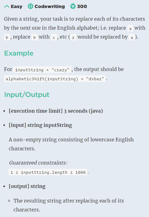 crazy 를 예를 들어봤을때, 출력은 아래 Console output처럼 나오네요. 각 문자하나씩 다음 알파벳으로 변한 것을 알게되었습니다. 이제 끝. 이제 리턴시키면 됩니다.